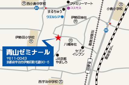 〒611-0043 京都府宇治市伊勢田町毛語90-5 ビレッジ青山1F |